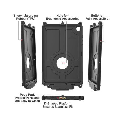 The IntelliSkin® Next Generation protective sleeve for the Samsung Galaxy Tab A9+ includes all the great features of the original IntelliSkin® while adding several enhancements. An insert molded redesign of the skin combines a hard plastic shell with soft, shock-absorbing rubber. Ruggedized contacts for repetitive docking in field applications remain on the exterior, but are now flat to collect less dirt and allow for easier cleaning. And an integrated USB Type-C connector at the bottom of the skin allows for device charging even when you don’t have a GDS® Dock™ available. Like the original IntelliSkin®, these sleeves still provide military-grade drop protection and prevent damage to your device’s charging port from constant docking with an integrated GDS® connector molded directly into the skin. The IntelliSkin® Next Generation for the Samsung Galaxy Tab A9+ is compatible with a variety of GDS® Docks™ and accessories, as well as new docking cups for upgrading existing GDS® vehicle docks. Always Protected. Always Connected.®