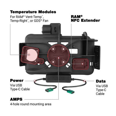 - Compatible with most RAM® dock accessories including Temperature Control Accessories, RAM® NFC Extender, GDS® Roto-Mag™, and side accessory attachments