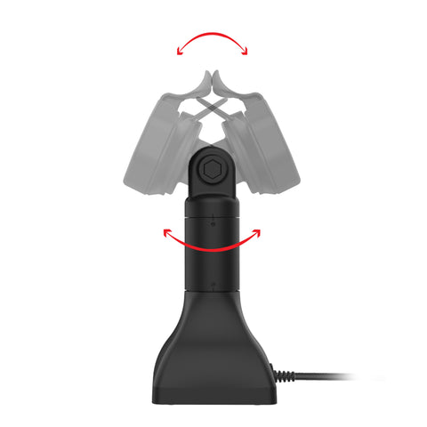 - Dock swivels 180 degrees and enables connected devices to tilt 180 degrees