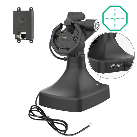 GDS® Uni-Conn™ Powered Locking Tilt & Swivel Dock with PoE + Data (RAM-GDS-DOCKLR-D14-U3E-2A)