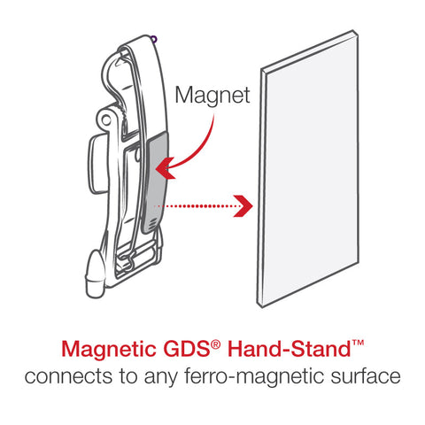The magnetic version of the GDS® Hand-Stand™ tablet hand strap and kickstand is a perfect accessory for enabling your tablet device for field use, and is compatible with any IntelliSkin® sleeve that features the unique circular interface as an attachment point. With the magnetic strap, easily secure your device to a number of metal surfaces. The GDS® Hand-Stand™ is specifically designed for the enterprise customer, while being an ideal solution for consumers alike. Its unique design integrates a comfortable hand strap that’s compatible with a gloved hand, while also featuring the ability to be rotated 360 degrees to for an ideal viewing angle. In addition, an integrated kickstand allows for positioning the tablet on a flat surface for on the go operation of your tablet. Always Protected. Always Connected.®