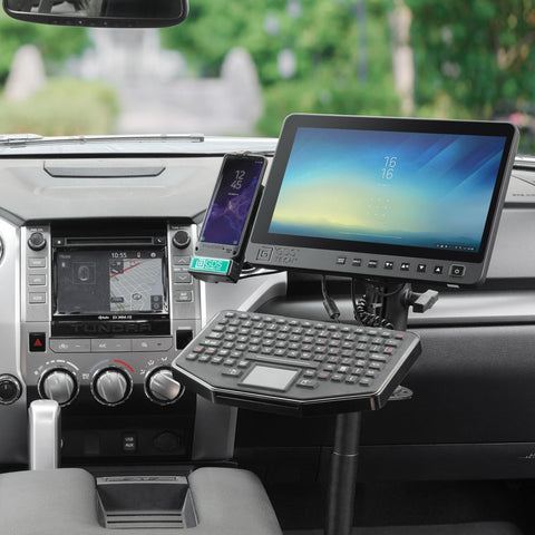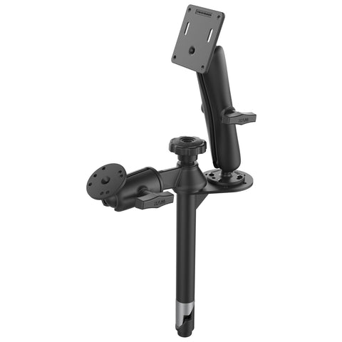 This in-vehicle GDS® View™ monitor and GDS® Keyboard™ mount features a RAM® Tele-Pole™ 8” upper pole with flange, 6” swing arm, and a long C size double socket arm. Easily connect your GDS® Keyboard™ to the swing arm, and attach the GDS® View™ monitor to the flange and double socket arm via the included ball bases. With the ability to swing the keyboard out of the way when not in use as well as position the monitor at nearly any angle, ensure your mobile workstation is backed by RAM® Mounts for strength, durability, and versatility.